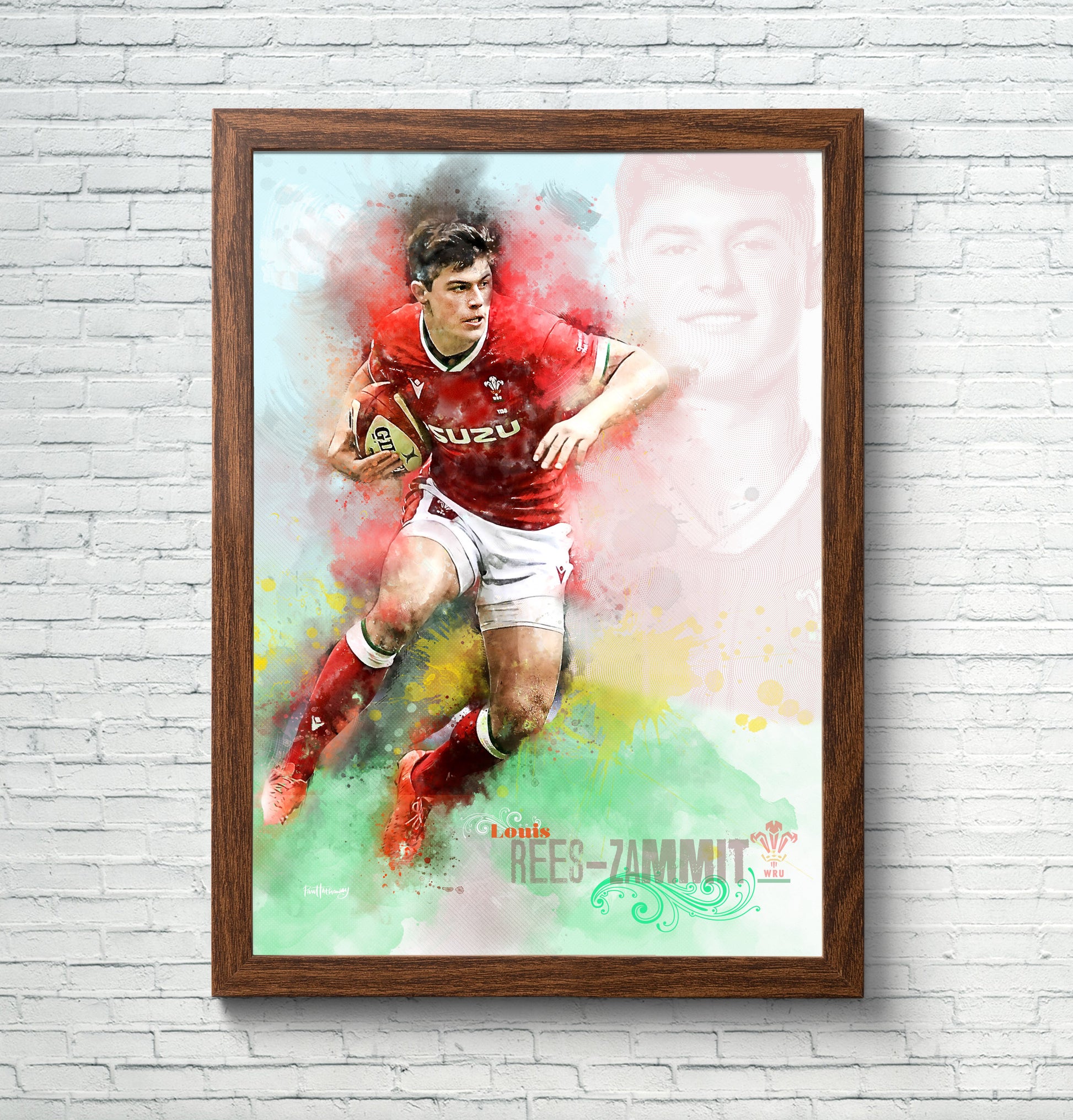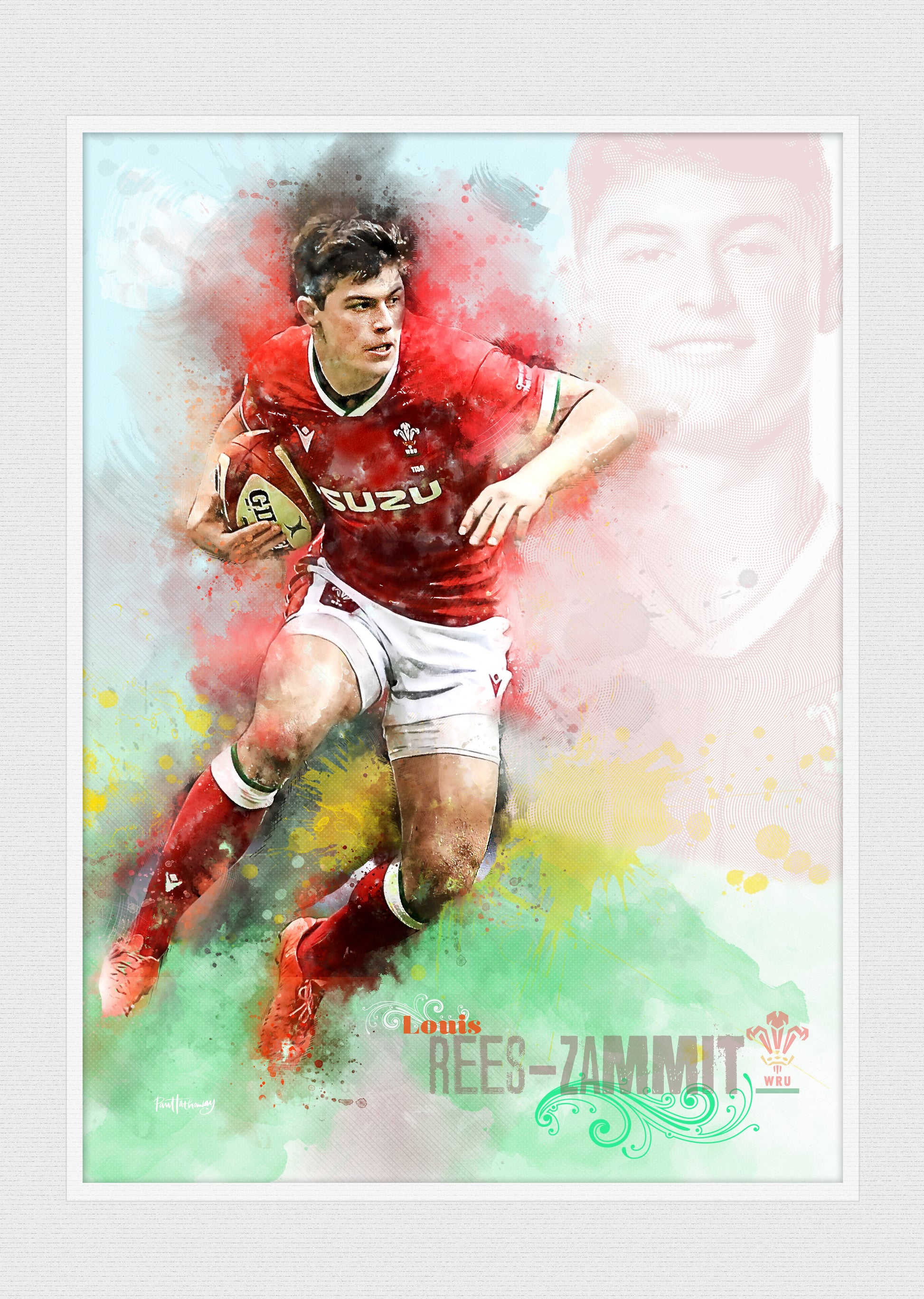 This Louis Rees-Zammit rugby art print will make a great gift for any rugby fan!